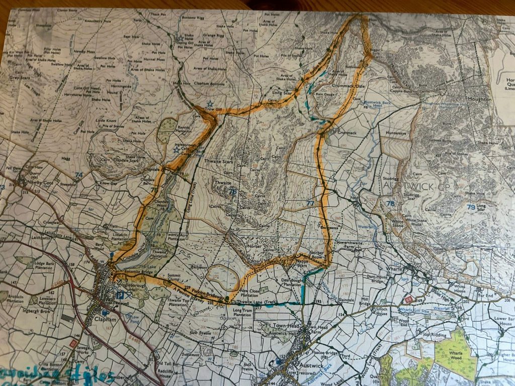 At Crummack lane we take a path over a hill with several stiles. If dog owners wish to avoid these they can carry on down the lane turning right to Thwaite lane track which we will join further along and back to Clapham.
